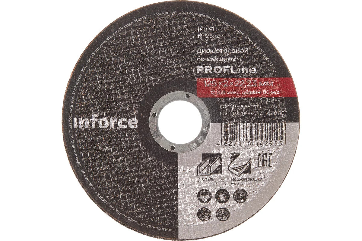 Наименование Диск отрезной по металлу (125х2.0х22.23 мм) Inforce IN125x2,0