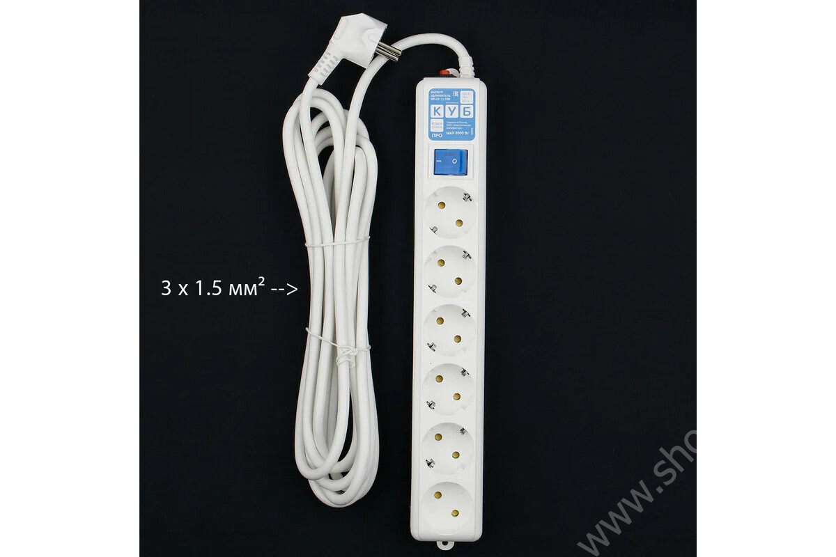 | Наименование | Фильтр-удлинитель Power Cube PC PRO, 5м, 6 розеток LC контур, белый 16А/3,5 кВт 3х1,5мм SPL6-16-P-5М |