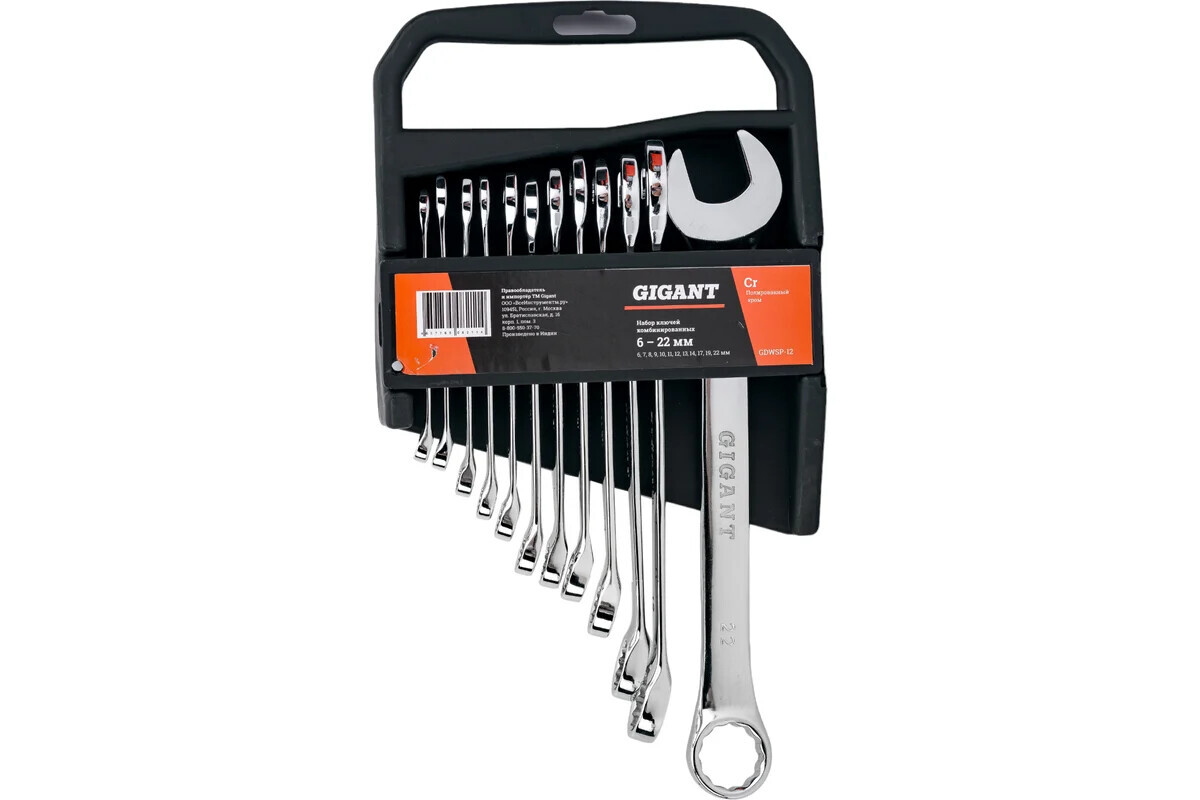 | Наименование | Набор комбинированных ключей Gigant 6 - 22 мм, 12 шт., полированный хром, Сталь Cr-V, 6-22мм, GDWSP-12 |